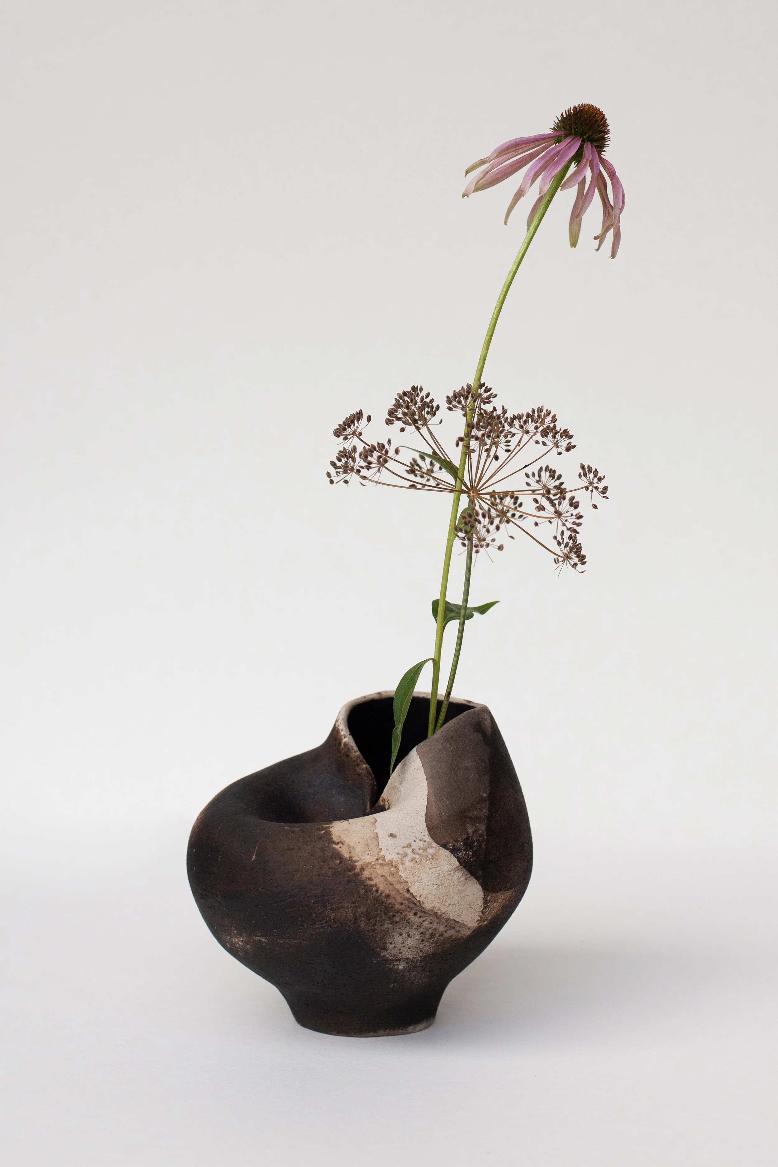 One of a kind organic vase fired in a wood kiln and finished in a traditional Baltic raku technique.